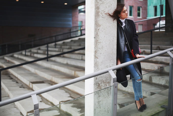 I’M WEARING >> Coat: H&M Trend | Jeans: MiH | Bag: Neri Karra | Hat: Vintage | Turtle neck: Monki | Rings: Tom Wood