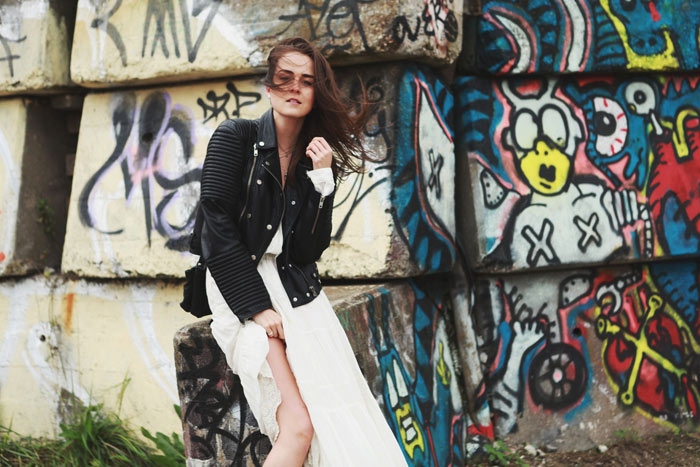3. Stunning outfit! I’m completely in love with it. Love the girly dress and the tough leather jacket you paired with it.