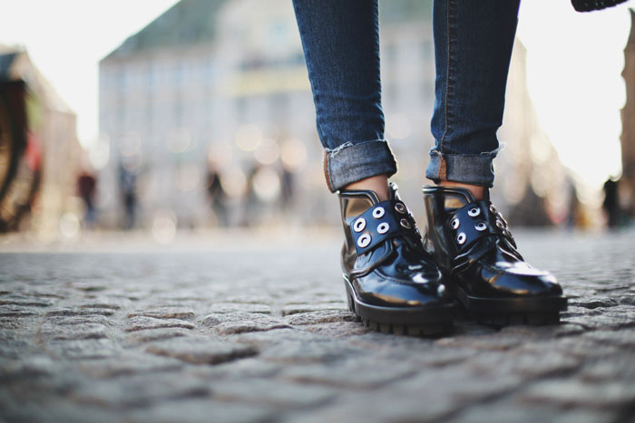 I like the combination of high-waist jeans and rough boots. A nice way to make legs look longer without wearing heels))