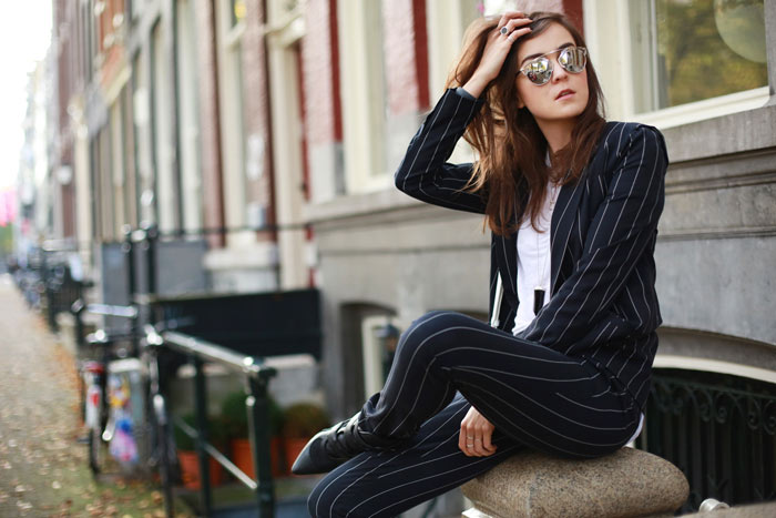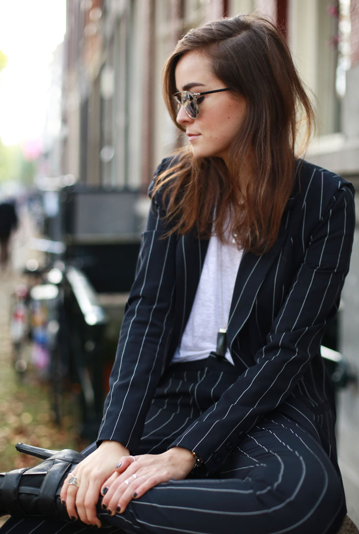 We shot these right before flying to Marrakech, one of those days where I completely forgot it was Autumn and we were still enjoying from an extremely appreciated Indian Summer. There’s something about suits that has got me all crazy about them lately. This one seems very “corporate” and I have already worn it before while filming with Canon during London Fashion Week, but pinstripes are such a classic and you can always style it up up make it less formal.
