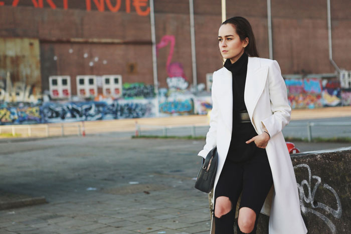 amazing outfit! Really love the contrast between the white coat and your black clothes! <3