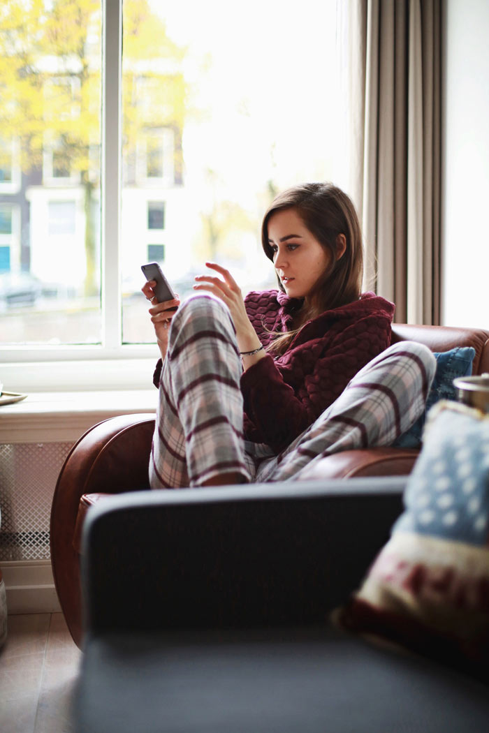 The cold Autumn mornings have their perks as well and the truth is, theres nothing quite as cozy as staying at home while its cold and crisp outside, wearing your favourite pyjamas and looking through the window while holding a cup of coffee. We shoot these images for Hunkemoller at the new Max Brown Hotel in Amsterdam which has quickly become a favourite, specially because its cozy and it makes you feel like you are “at home”, right by one of my favourite canal views.