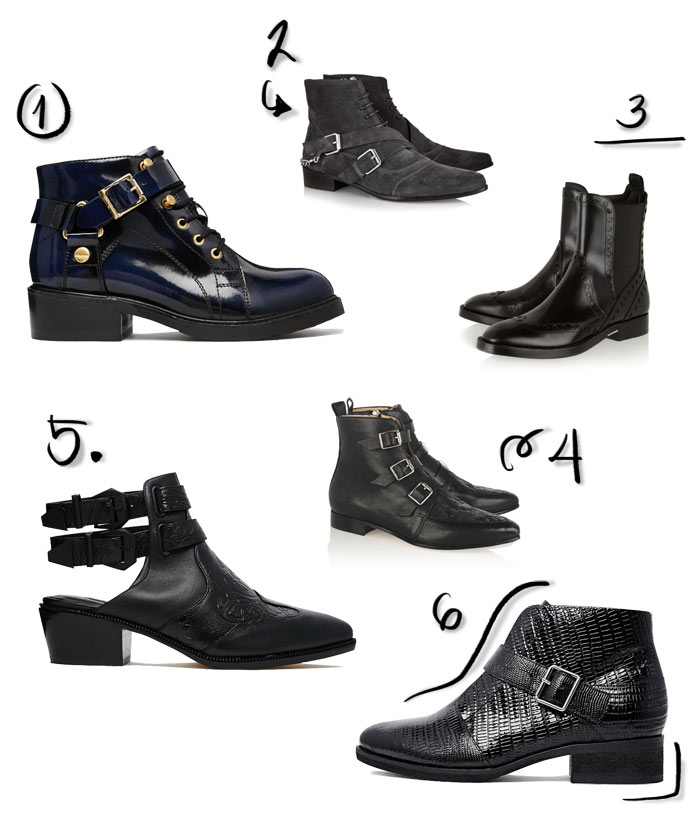 While browsing for the perfect boots for Winter, I came across these flat boots with a twist. I am really into ankle boots for a while but all of these have something special about them. Whether its a cool buckle, a special embossed print or a discreet chain, I am having a hard time picking out a favourite pair.