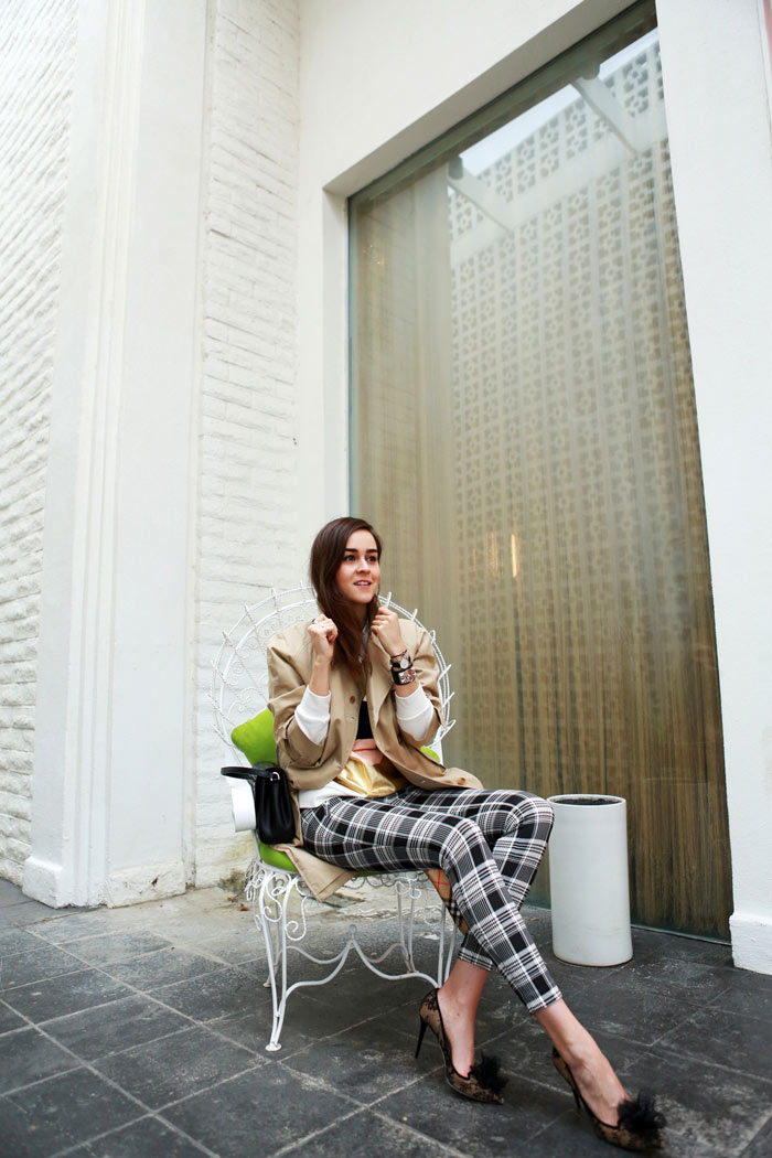 1. This outfit is just amazing. The trench is classic, elegant and it looks perfect with these plaid pants, together they created a fancy mix. These Jimmy Choo high heels are the new love of my life, they are really beautiful, original and super chic.