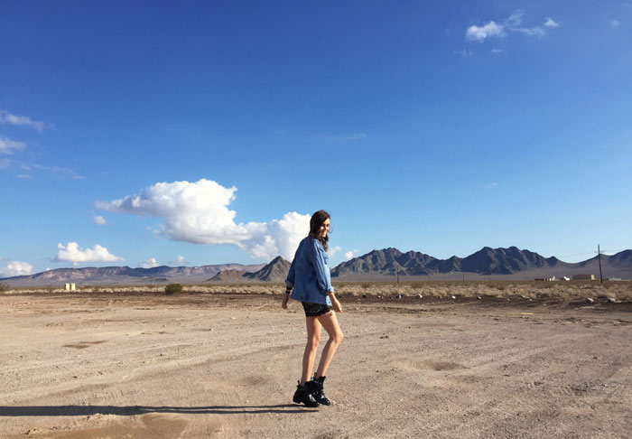 I might have done 3 shoots in one day -hence the same boots and jacket-, but driving in the middle of the desert has massive potential to stop on the side of the road and go crazy with the camera, even if I had to change in the car and trust me, being 1.80cm makes it a really hard task.
